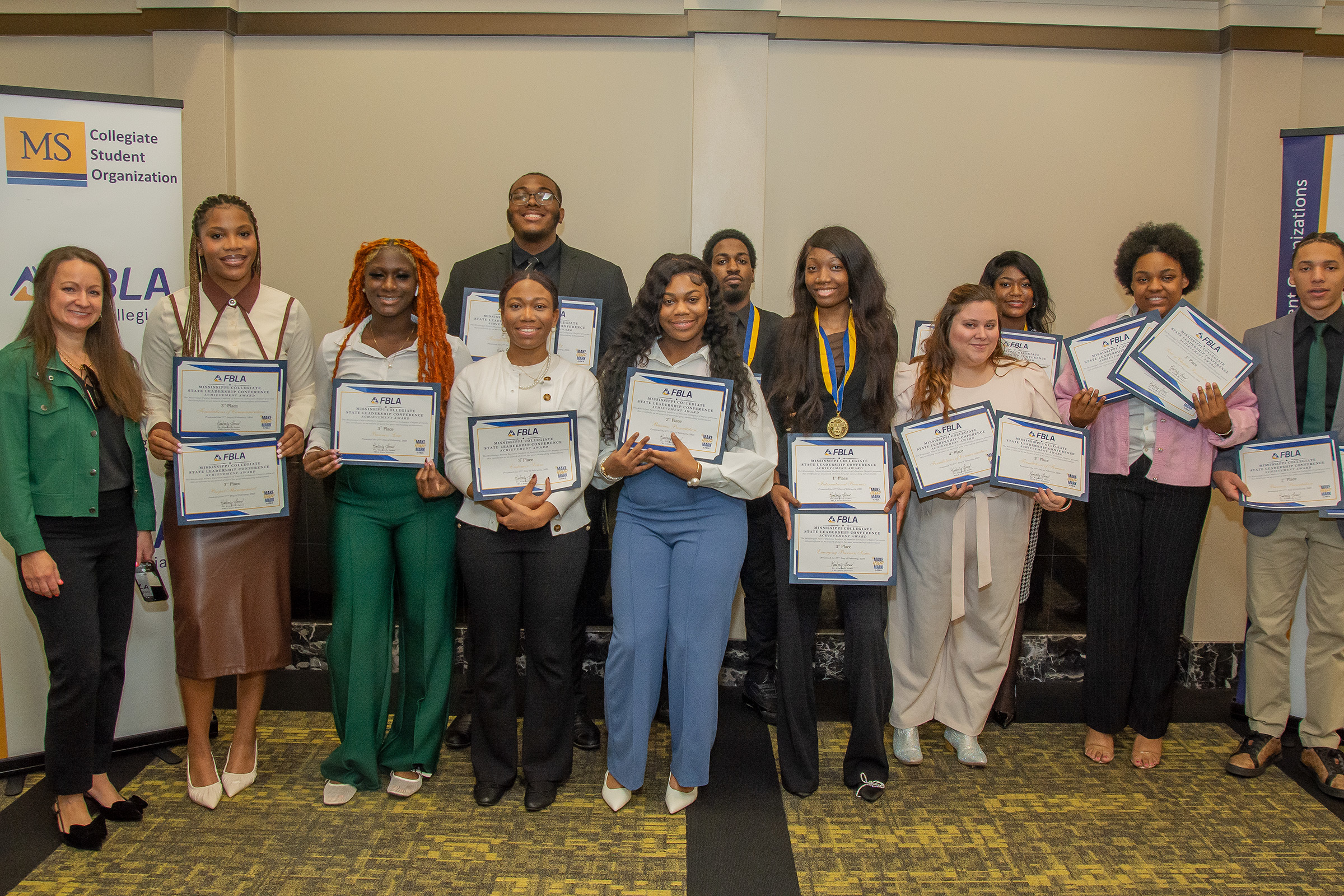 CLEVELAND, Miss. - Delta State University's chapter delegation of Future Business Leaders of America showcased its talent and business acumen at the 2026 State Leadership Conference, held Feb. 25-27 at the University of Southern Mississippi in Hattiesburg. Competing against top FBLA chapters from across the state, Delta State students brought home numerous awards and secured their place among Mississippi's top future business leaders. The team has also advanced to the national level and hopes to compete this summer in Las Vegas, Nevada.